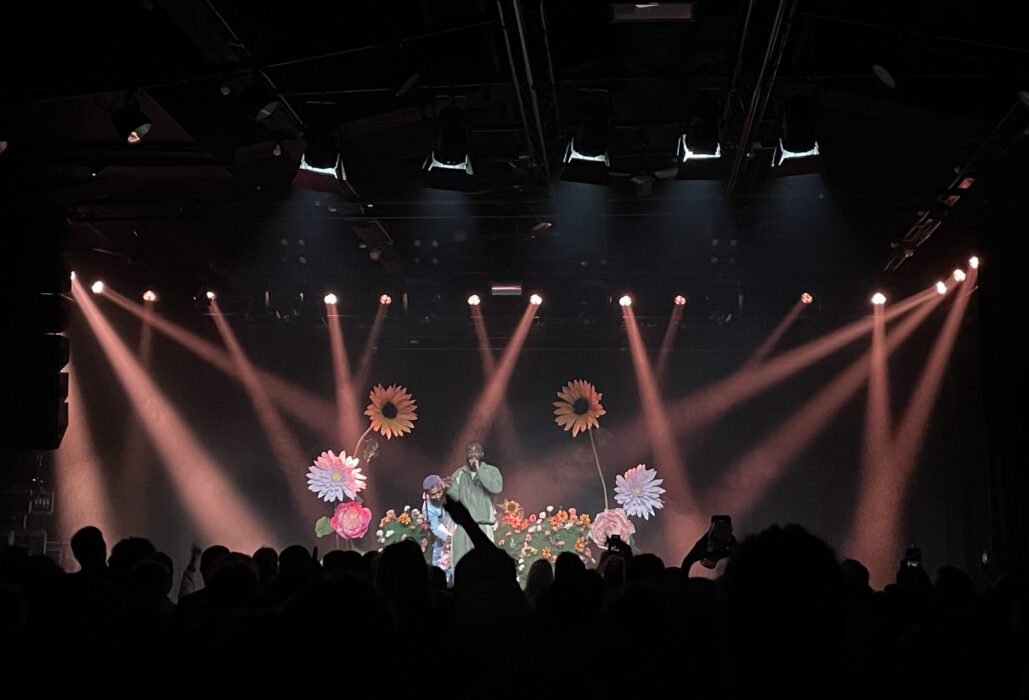 So richtig laut wurde das Publikum dann aber trotzdem erst, als endlich Kofi Stone gemeinsam mit seinem DJ das wunderschöne, mit Blumen – ganz im Stile seines aktuellen Album-Covers – gestaltete Bühnenbild betrat und sich von Anfang an mit Liebesbekundungen an die Crowd nicht zurück hielt: „I got so much love for every single one of you in this room“. Und so sollte es auch die nächsten gut 70 Minuten weitergehen. Mit einem Mix aus neueren und älteren Songs, kurzen Anekdoten und emotionalen Ansagen zog Kofi Stone das Publikum in seinen Bann. So betonte er vor seinem gemeinsamen Song mit Loyle Carner „It’s Okay to Cry“, wie wichtig es ihm ist, auch als Mann Gefühle zu zeigen oder erzählte von seiner Mutter, die er unterstütze wo es nur geht oder seinem guten Freund, der sich viel zu früh das Leben genommen hat.