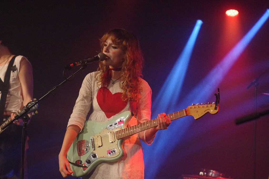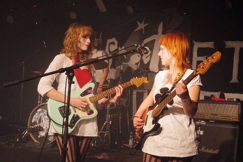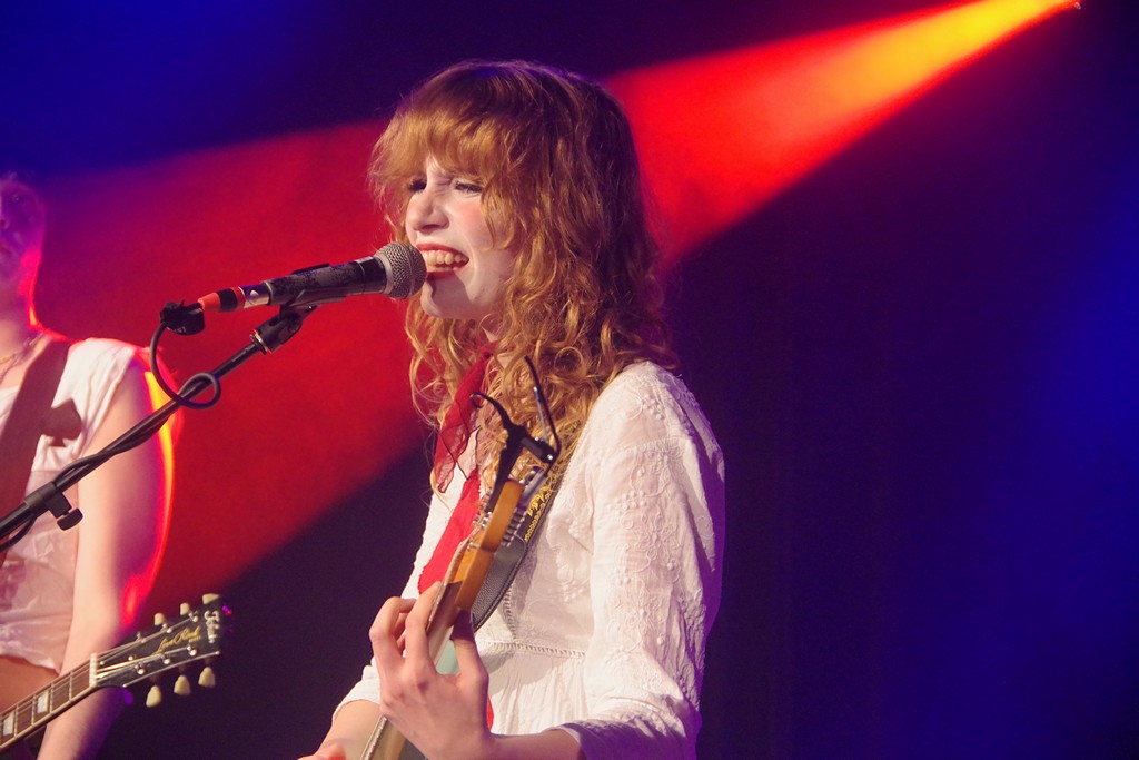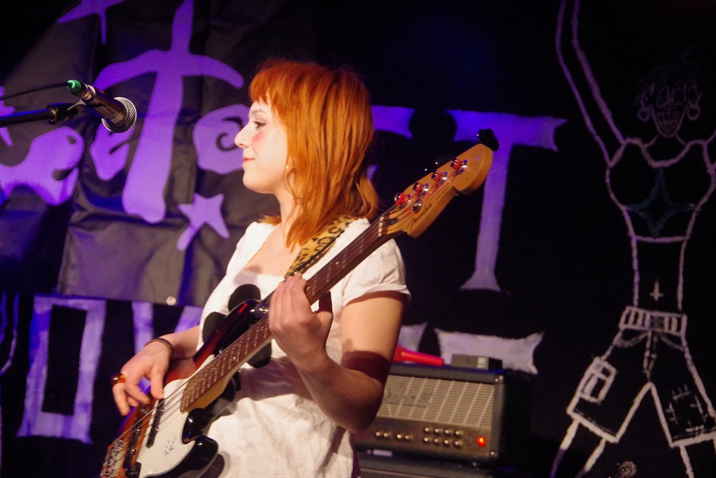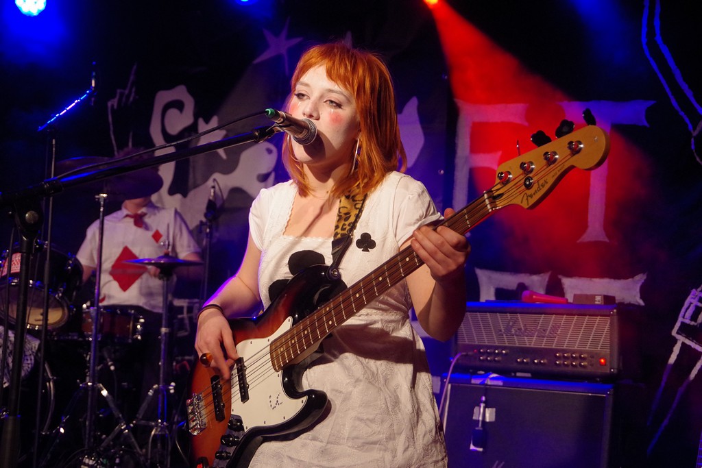 Es dauerte in der Folge nicht lange, bis sich die ersten Reihen füllten, obwohl es bis zum Showbeginn noch etwas hin war. Bevor die Wiener Punkband die Bühne betreten sollte, stand mit LEETA zunächst ein angenehmer Support-Act auf dem Programm. Mit ihrer Spielkarten-Optik im Bühnenoutfit war die Aufmerksamkeit schnell gesichert, ohne dass dies vom Musikalischen ablenkte: LEETA spielten einen eingängigen Indie-Sound, der vom angenehm Treibenden auch mal ins Angepunkte kippte. Ein Stück wie „Eyes“ bewegte sich eher im ruhigeren Bereich, während die Band mit „Arrow“ auch ins bewusst Schrammelige (durchaus positiv zu verstehen) ging. Das konnte sich durchweg hören lassen und kam auch beim Publikum gut an, das zwischenzeitlich erfolgreich zum Mitmachen animiert wurde. Mit Songs ihrer Debüt-EP sowie neuen Nummern hinterließen sie einen Eindruck, der über das bloße „Warm-up“ für den Hauptact hinausging.