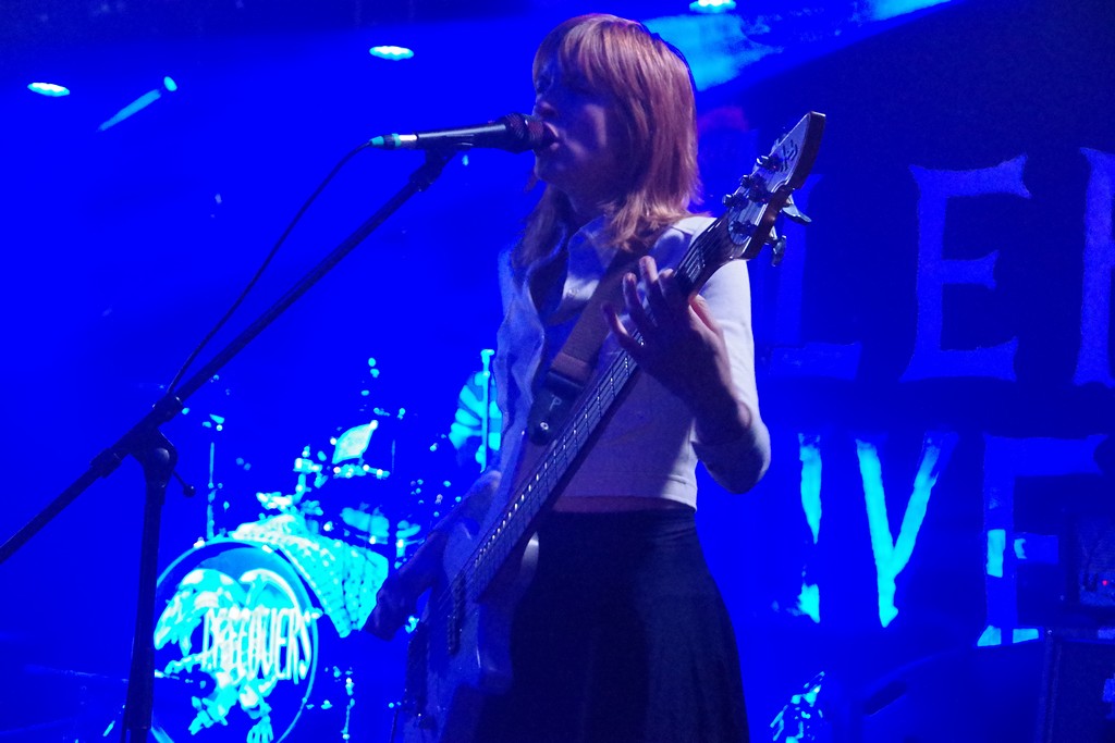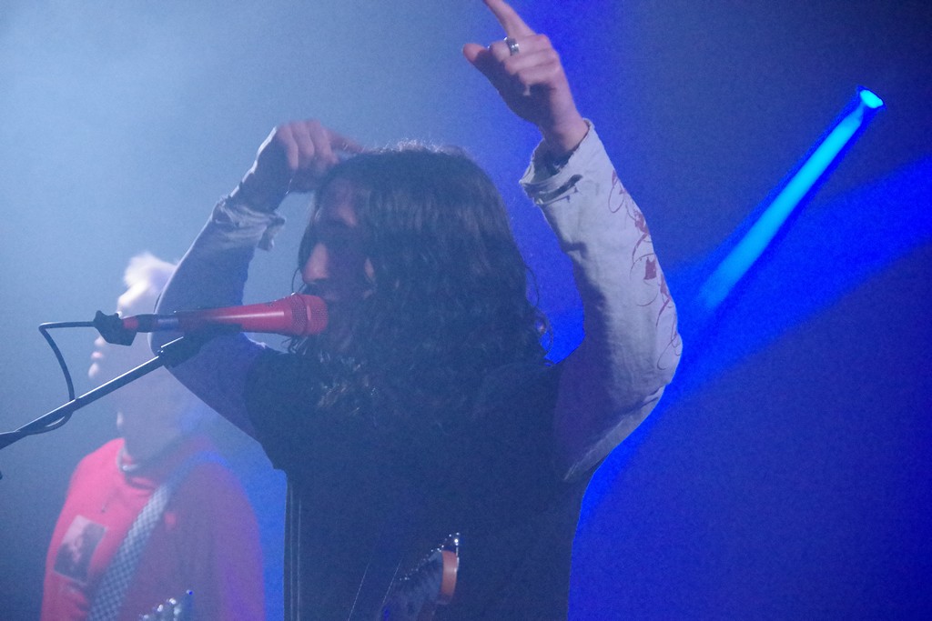 Als nach der kurzen Umbaupause das Licht ausging, machten die Leftovers schnell klar, dass sie auf der einen Seite vor Spielfreude strotzen, auf der anderen aber auch Inhalte vermitteln wollen. Das zeigte bereits „System“ mit seinem Intro über Angststörungen, während sich im Raum schnell viel Bewegung entwickelte. Angst musste hier jedoch niemand haben: Sänger und Gitarrist Leonid steckte früh die Regeln für Moshpit und Crowdsurfing ab, um sicherzugehen, dass sich alle an diesem Abend wohlfühlen können. Das schien gut zu funktionieren, denn bei allem Pogen und Co. herrschte durchweg eine friedliche, rücksichtsvolle Atmosphäre, während die Band ihren druckvollen Punk-Sound spielte, der immer mal wieder Abstecher in Richtung Grunge nahm.